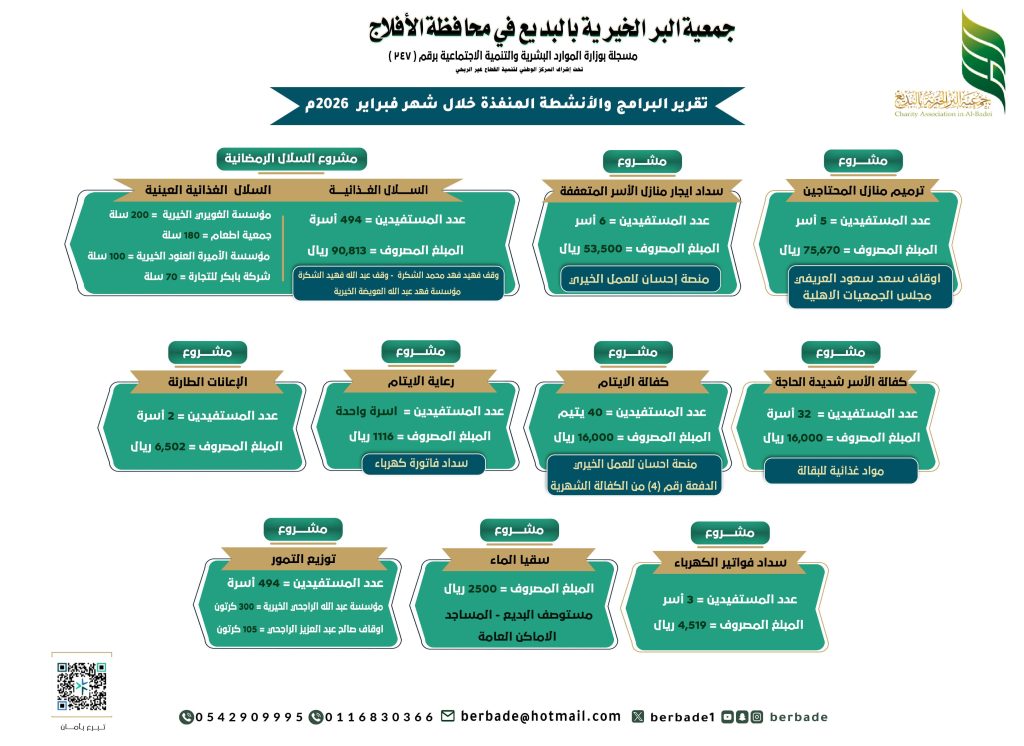 تقرير برامج وأنشطة الجمعية المنفذة خلال شهر فبراير 2026 م